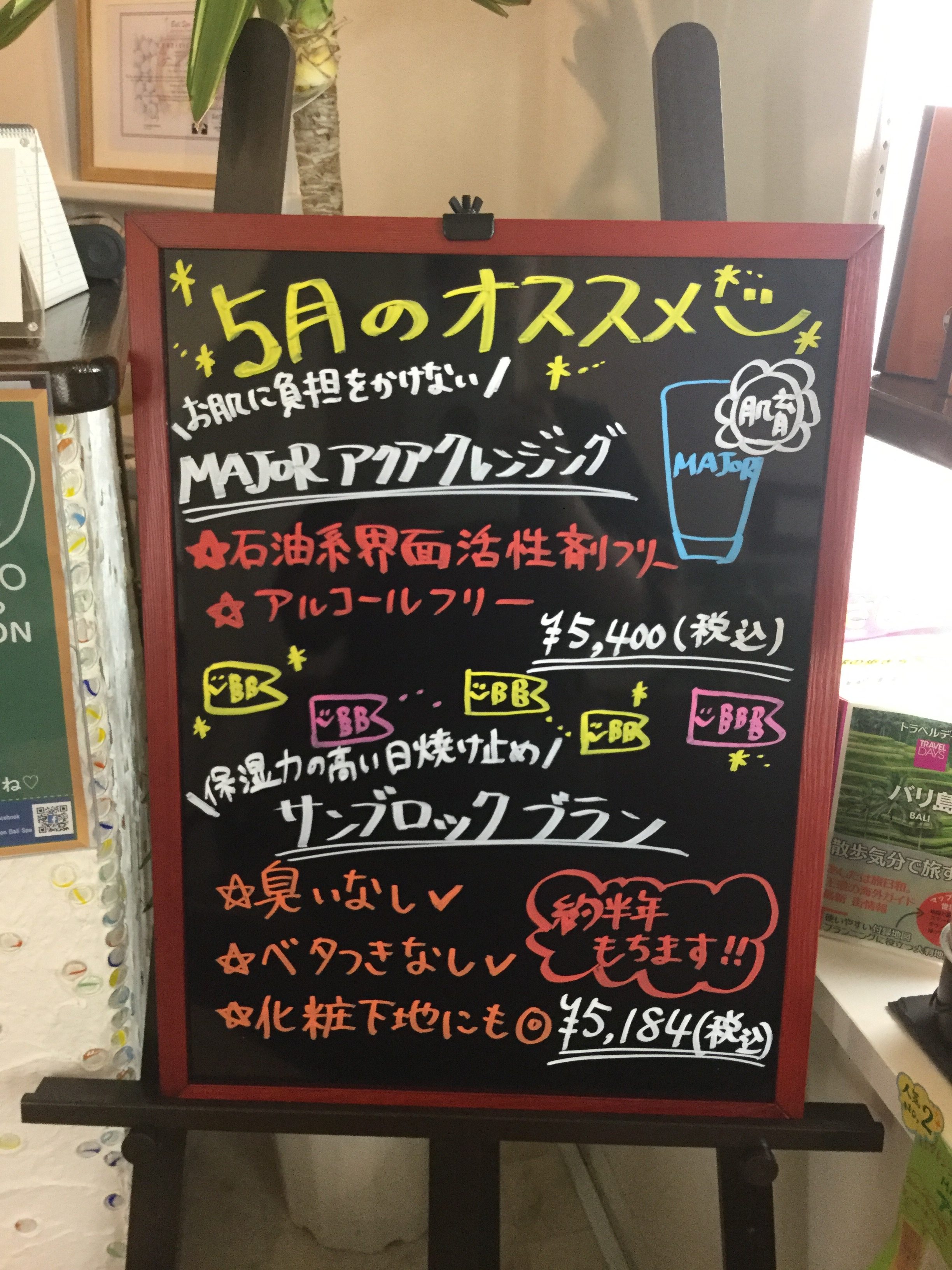 5月のお知らせは、当店で取り扱っている化粧品メーカー『MAJOR(マジョール)』の