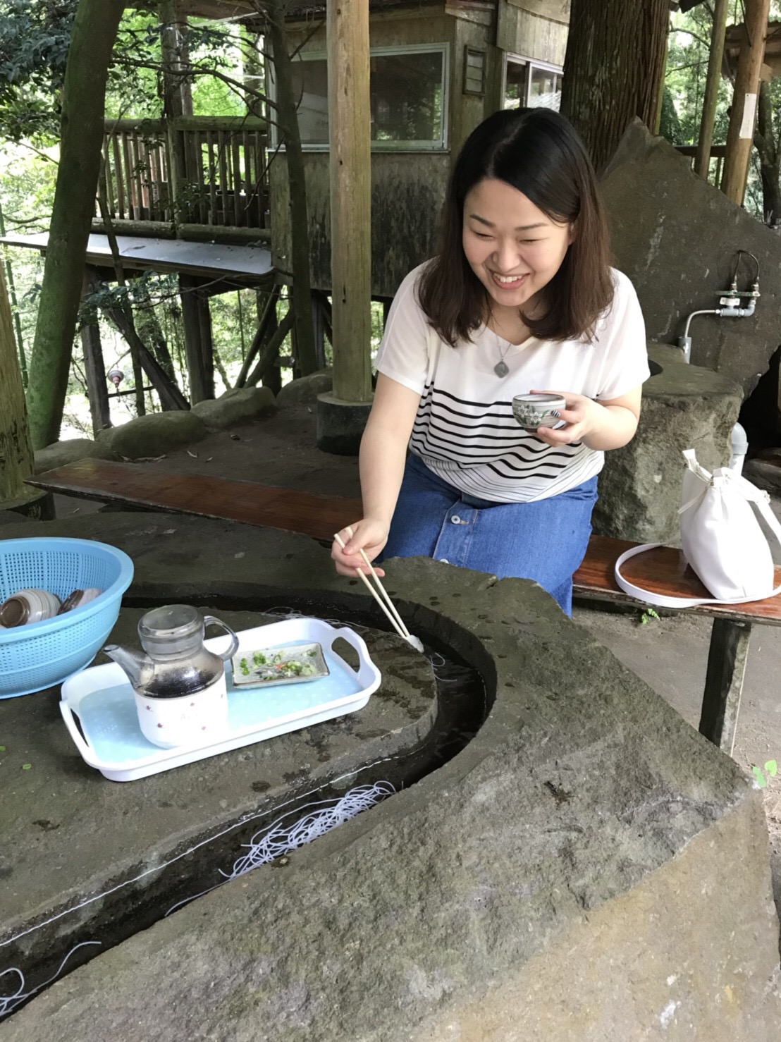 私は今年初めてのそうめんで、久しぶりのそうめん流しに子供のようにはしゃいでしまいました(#^^#) 流し台は石を削って作られており、とても大きくてたくさんの人が座れる作りとなっていました♪