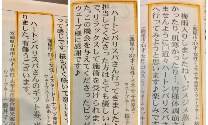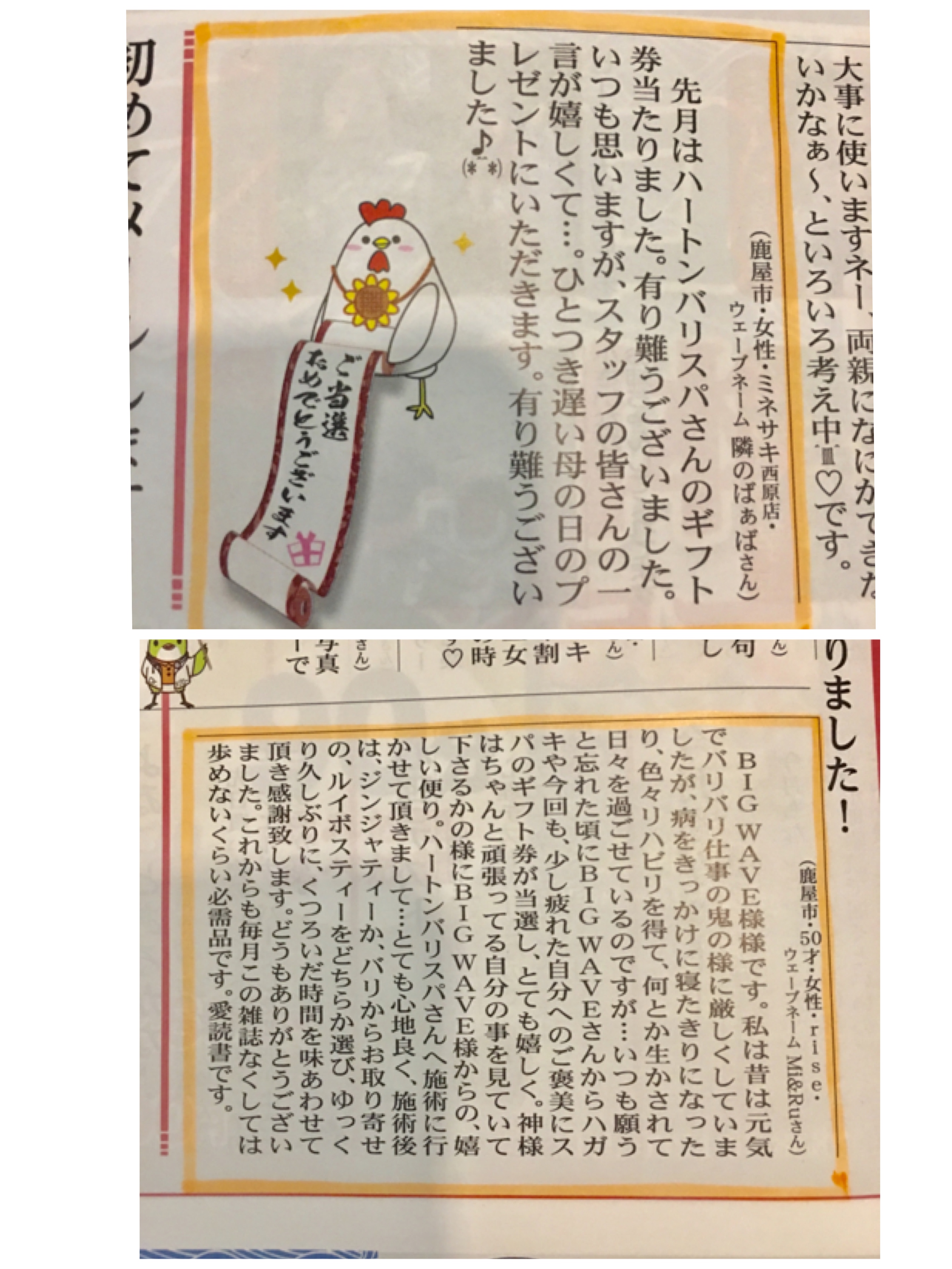 本日は当店も毎月掲載中の鹿屋市の情報誌『Big Wave』に載せられた、プレゼント企画で当店のギフト券が当選したお客様からの嬉しいお声をご紹介させていただきたいと思います♪ぜひご覧ください\(^o^)/\(^o^)/