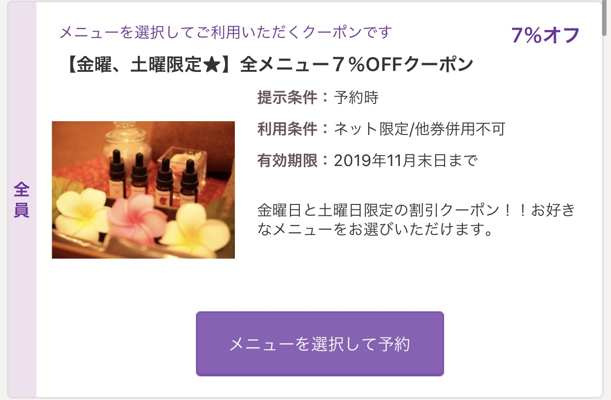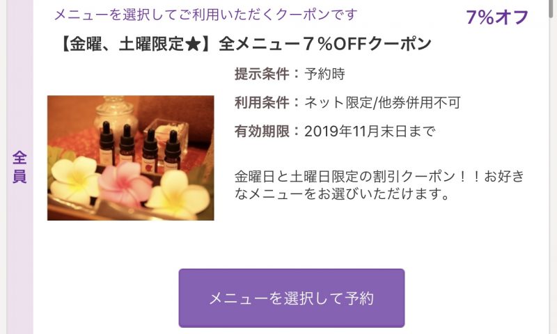全メニュー7%OFFのクーポンを配信中です(*^▽^*)