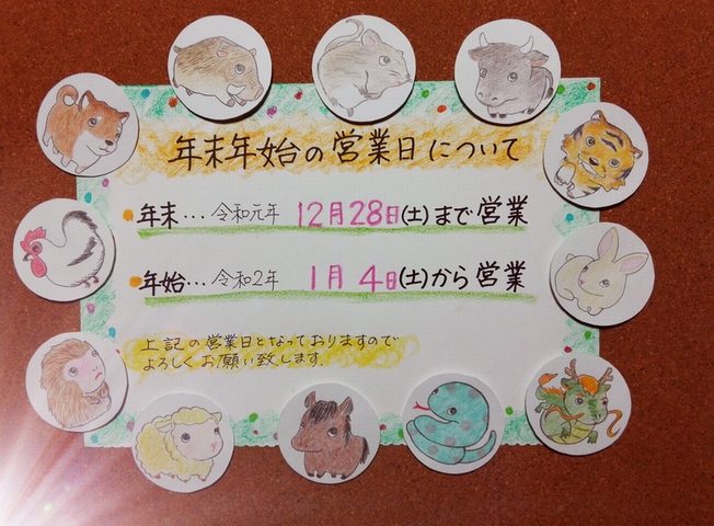 年内は12月28日(土)まで。年明け開店は1月4日からとなっておりますので