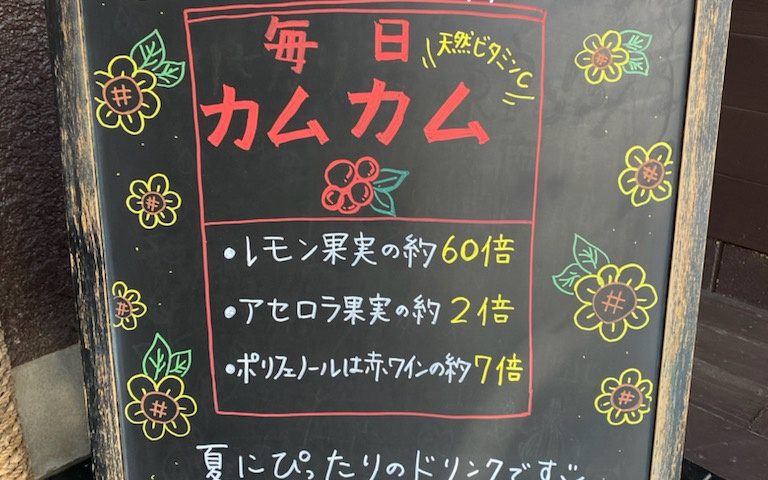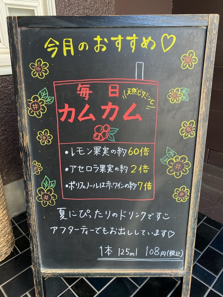 ブラックボードは最近アフターティーでよくでるカムカムを書きました♪スッキリ飲みやすく夏にぴったりです(^O^)